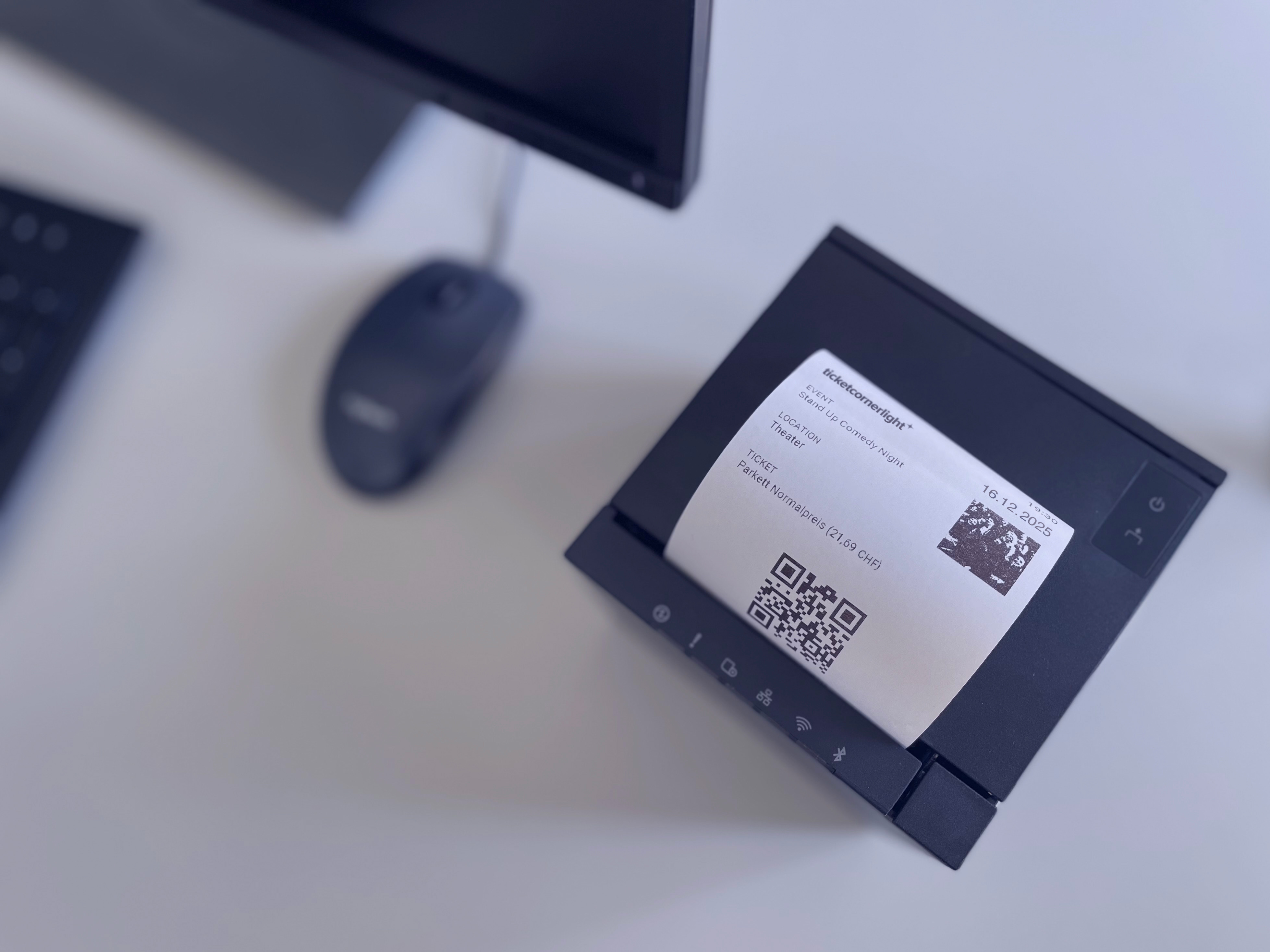 Unser Eigenverkaufs-Modul lässt sich problemlos mit einem gängigen Bondrucker von Epson verbinden. Einmal aufgesetzt, kannst du ganz einfach und schnell an der Tageskasse Tickets in Form eines Bons für deine Kundinnen und Kunden ausdrucken. Diese enthalten einen QR-Code und lassen sich wie gewohnt mit der EVENTIM.Access Scan-App validieren. Alternativ kannst du auch das PDF-Ticket auf einem Standard A4-Drucker ausdrucken.